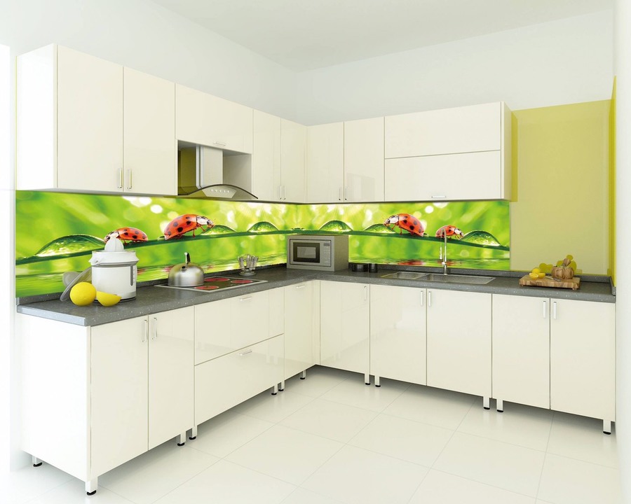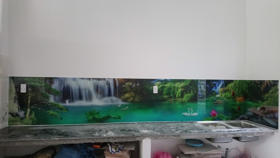 Kính sơn ốp bếp cao cấp với bề mặt cứng cáp, sáng bóng, sang trọng, mặt kính chịu nhiệt, dễ lau chùi, vệ sinh, giá phải chăng, dễ tiếp cận tới người dùng, có thể lựa chọn màu sơn, hoặc vẽ phong cảnh trang trí phù hợp với mọi đối tượng mong muốn tìm kiếm một vật liệu ốp bếp an toàn, bền đẹp cho gia đình