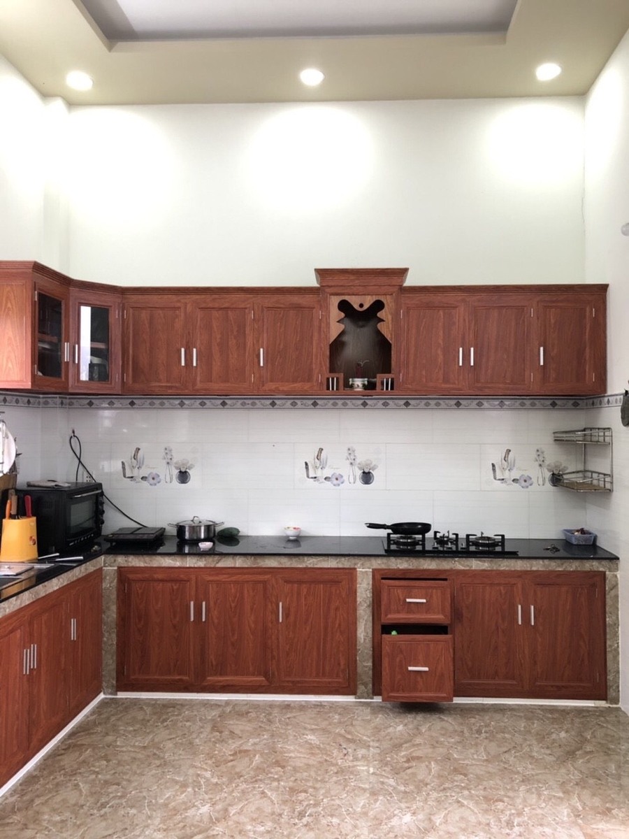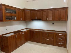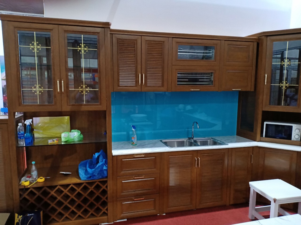 Tủ bếp nhôm sơn gỗ được thiết kế với phong cách cổ điển với màu giả gỗ vô cùng đẹp và bắt mắt tạo ra cho gia đình bạn. Nhiều ngăn để đồ tiện dụng nhẹ nhàng hơn đồ gỗ giá thành tốt dễ dàng vận chuyển. Và bắt kịp xu hướng thời đại