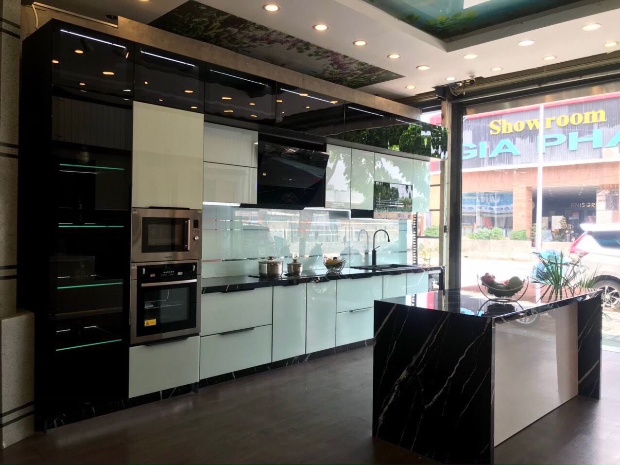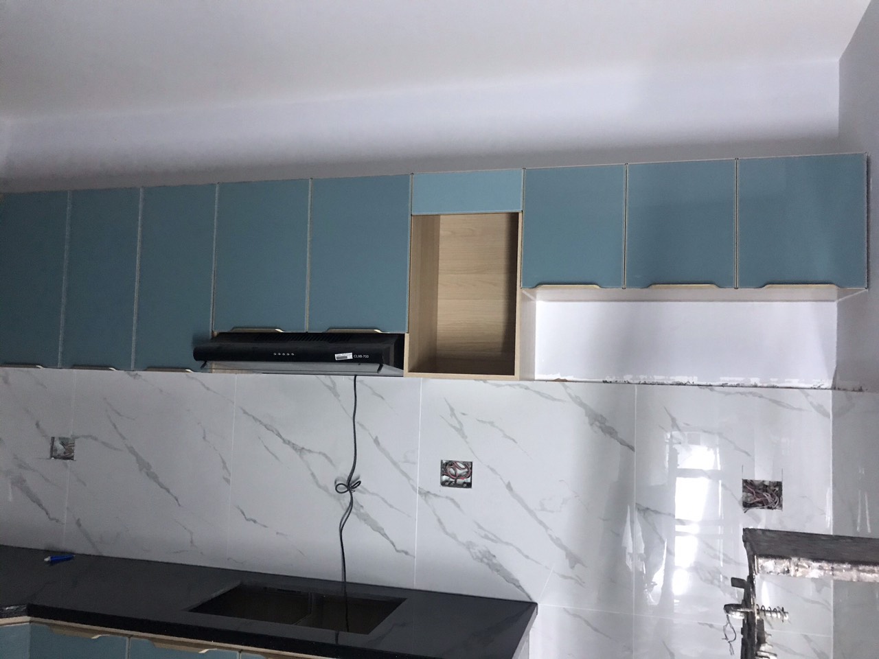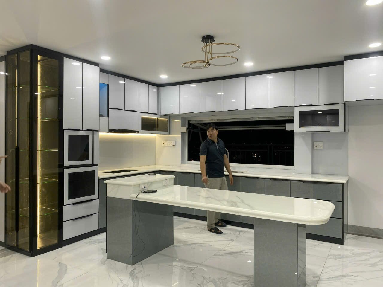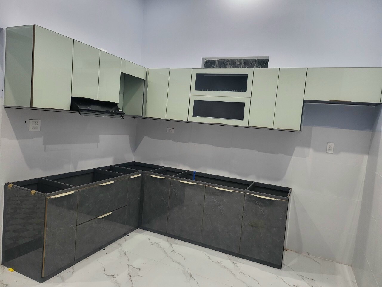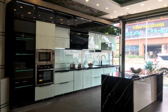 Tủ bếp nhôm nội thất hiện đại hệ cánh kính